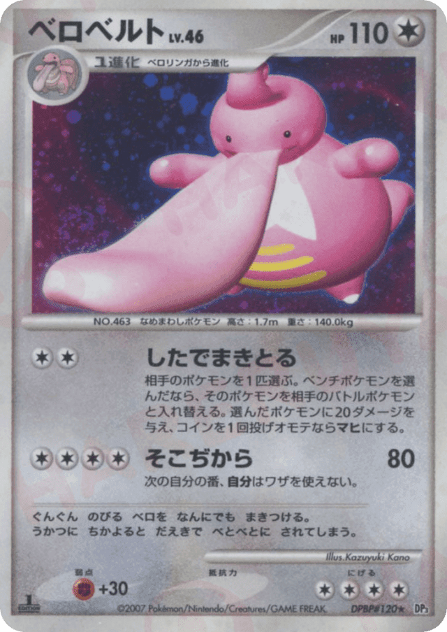 Tongue ReelCost: 2相手のポケモンを1匹選ぶ。ベンチポケモンを選んだなら、そのポケモンを相手のバトルポケモンと入れ替える。選んだポケモンに20ダメージを与え、コインを1回投げオモテならマヒにする。