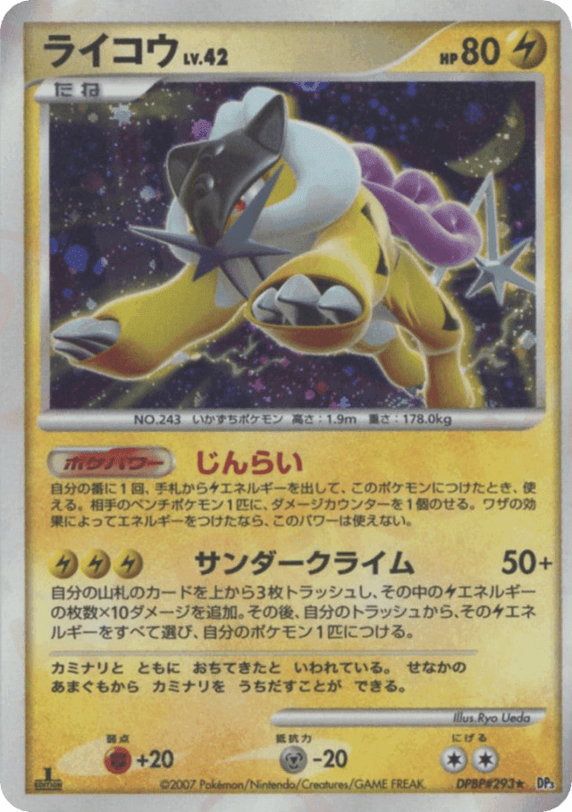 Once during your turn (before your attack), when you attach a Lightning Energy card from your hand to Raikou, you may put 1 damage counter on 1 of your opponent's Benched Pokémon.