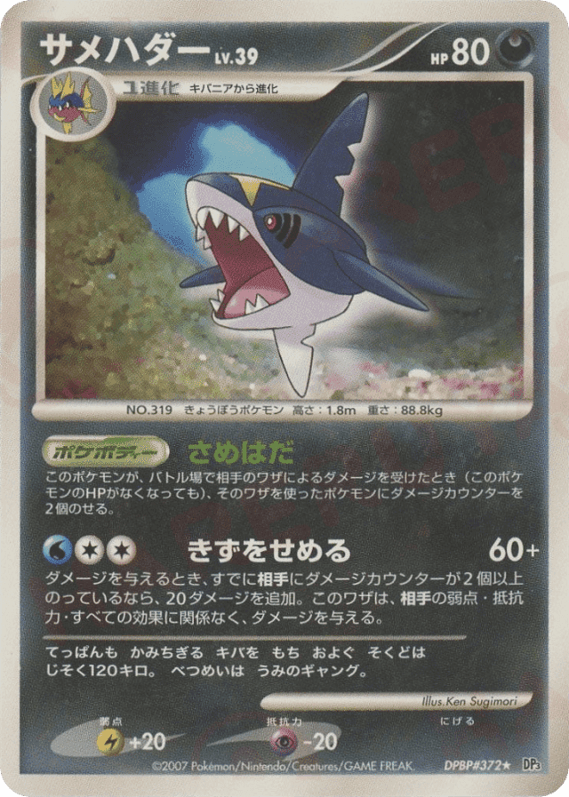 If Sharpedo is your Active Pokémon and is damaged by an opponent's attack (even if Sharpedo is Knocked Out), put 2 damage counters on the Attacking Pokémon.