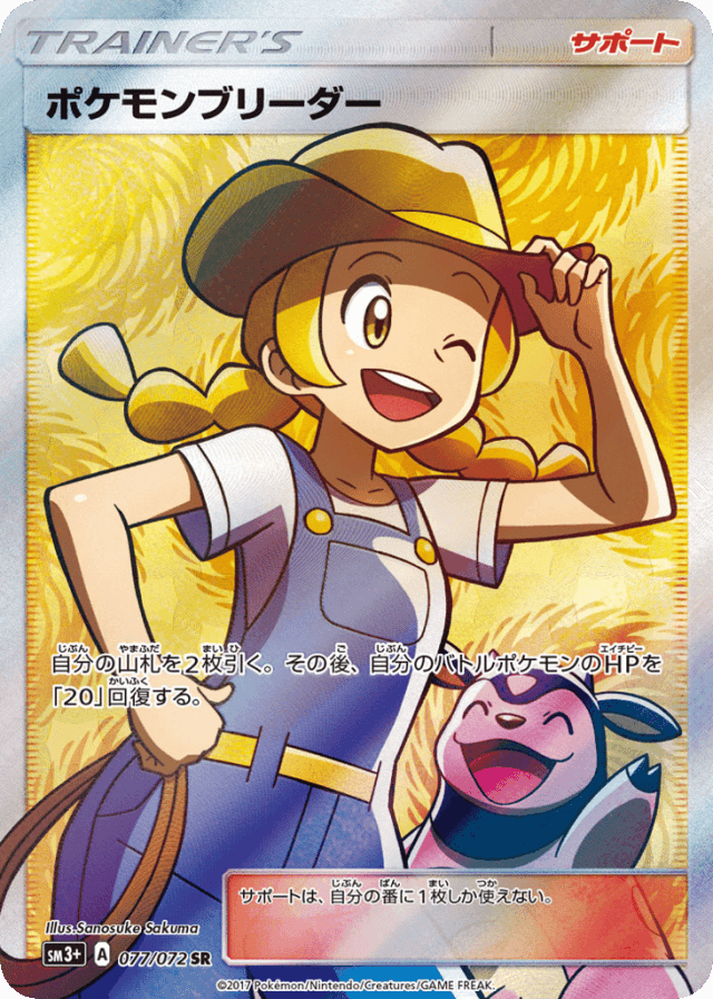 自分の山札を2枚引く。その後、自分のバトルポケモンのHPを「20」回復する。 サポートは、自分の番に1枚しか使えない。