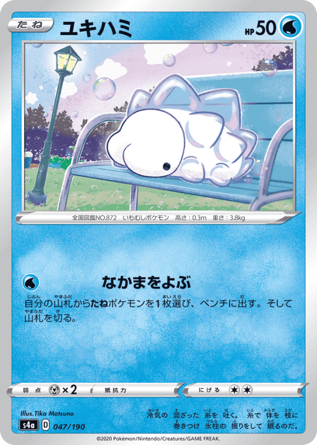 自分の山札からたねポケモンを1枚選び、ベンチに出す。そして山札を切る。