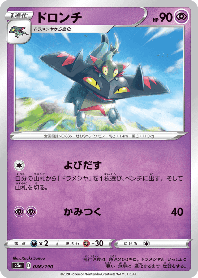 自分の山札から「ドラメシヤ」を1枚選び、ベンチに出す。そして山札を切る。