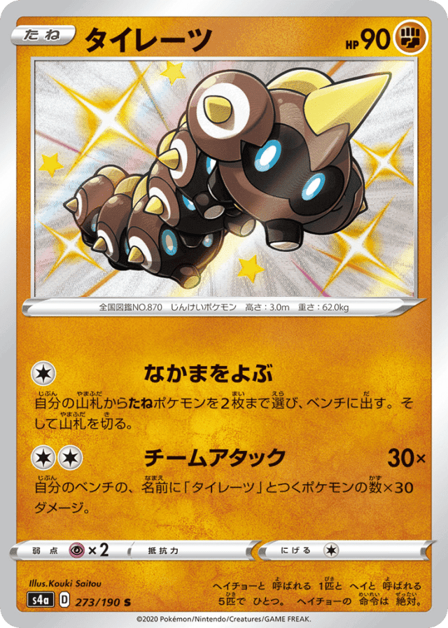 Team Attack30×Cost: 2自分のベンチの、名前に「タイレーツ」とつくポケモンの数×30ダメージ。