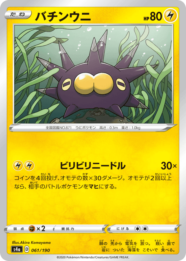 コインを4回投げ、オモテの数×30ダメージ。オモテが2回以上なら、相手のバトルポケモンをマヒにする。