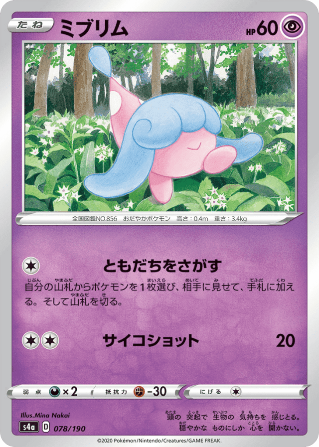 自分の山札からポケモンを1枚選び、相手に見せて、手札に加える。そして山札を切る。