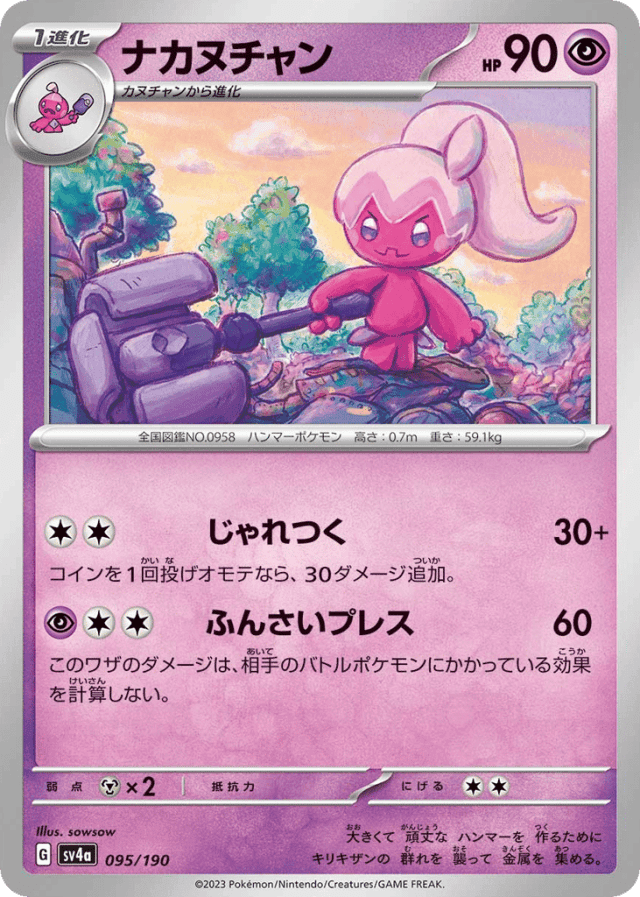 Pulverizing Press60Cost: 3このワザのダメージは、相手のバトルポケモンにかかっている効果を計算しない。