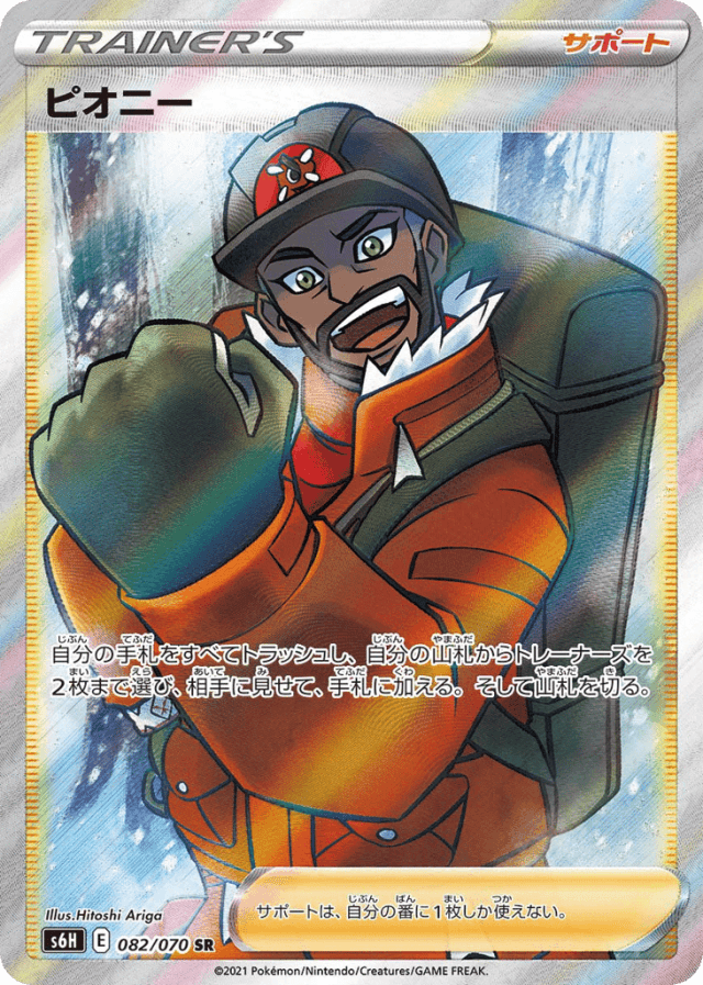 自分の手札をすべてトラッシュし、自分の山札からトレーナーズを2枚まで選び、相手に見せて、手札に加える。そして山札を切る。 サポートは、自分の番に1枚しか使えない。