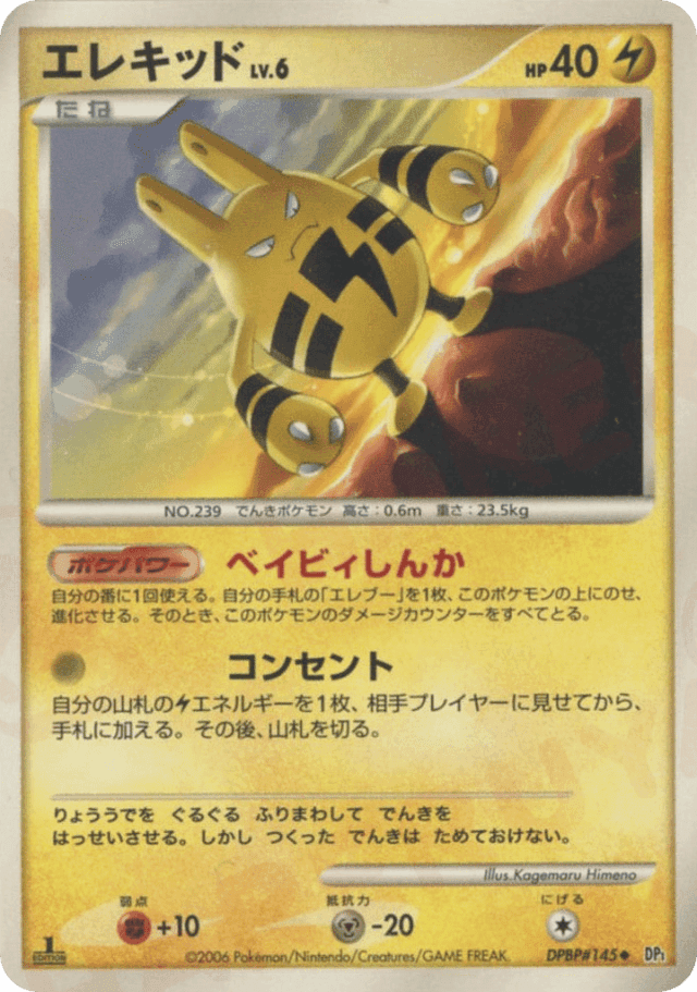 Once during your turn (before your attack), you may put Electabuzz from your hand onto Elekid (this counts as evolving Elekid) and remove all damage counters from Elekid.