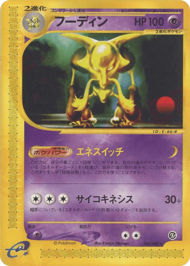 Once during your turn (before your attack), you may move an Energy card from 1 of your Pokémon to another of your Pokémon. This power can't be used if Alakazam is affected by a Special Condition.