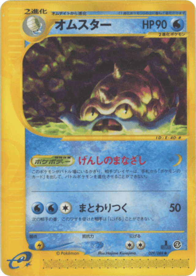 As long as Omastar is your Active Pokémon, your opponent can't play Basic Pokémon or Evolution cards from his or her hand to evolve his or her Active Pokémon.