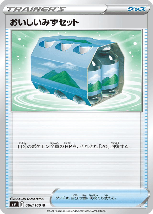 自分のポケモン全員のHPを、それぞれ「20」回復する。 グッズは、自分の番に何枚でも使える。