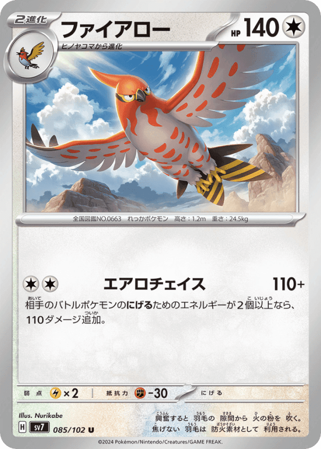 Aero Chase110+Cost: 2相手のバトルポケモンのにげるためのエネルギーが2個以上なら、110ダメージ追加。
