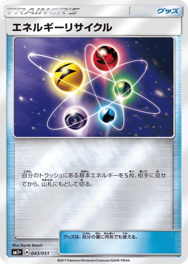 - 自分のトラッシュにある基本エネルギーを5枚、相手に見せてから、山札にもどして切る。