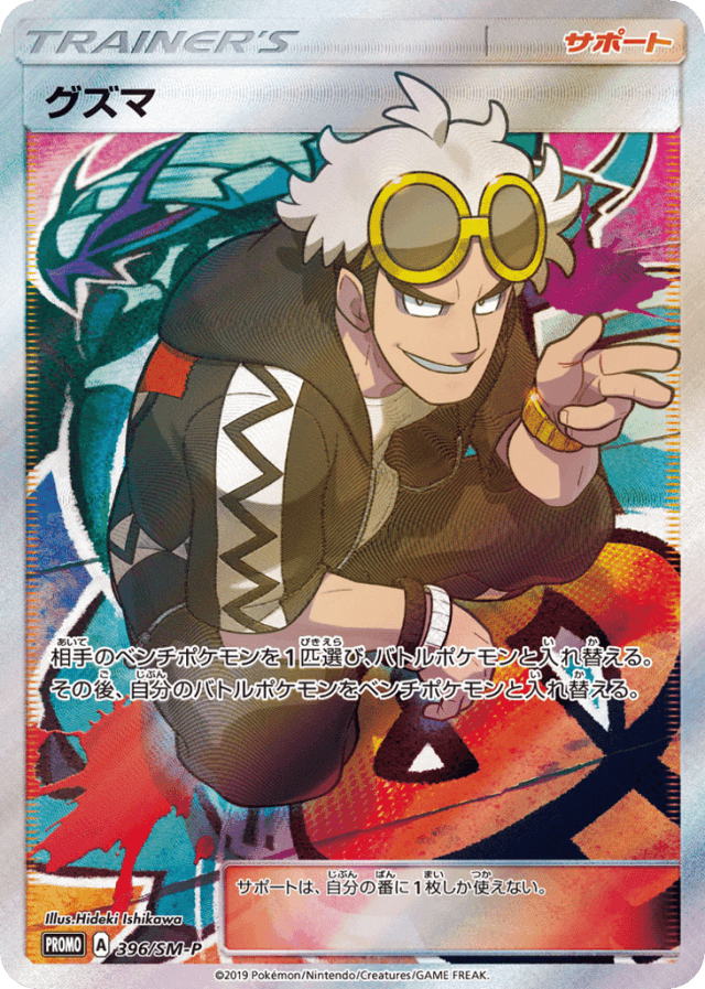 相手のベンチポケモンを1匹選び、バトルポケモンと入れ替える。その後、自分のバトルポケモンをベンチポケモンと入れ替える。 サポートは、自分の番に1枚しか使えない。