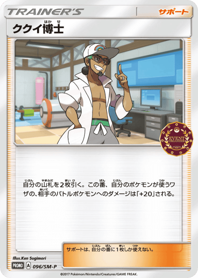自分の山札を2枚引く。この番、自分のポケモンが使うワザの、相手のバトルポケモンへのダメージは「+20」される。 サポートは、自分の番に1枚しか使えない。