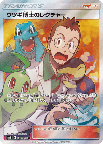 自分の手札にある2進化ポケモンを1枚、そのポケモンへと進化する自分の場のたねポケモンにのせて進化させる。(最初の自分の番と、この番出したばかりのたねポケモンには使えない。) グッズは、自分の番に何枚でも使える。