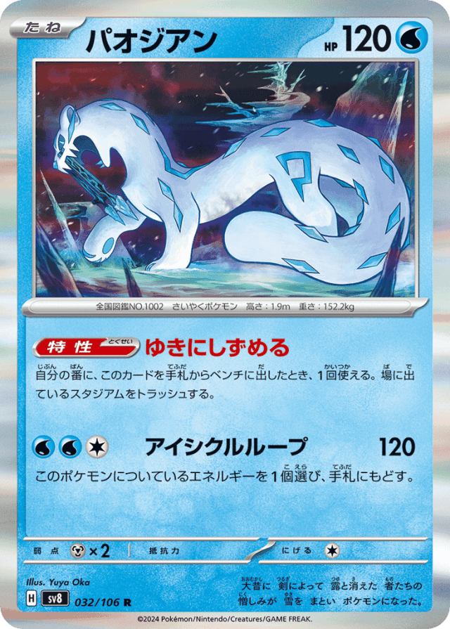 Icicle Loop120Cost: 3このポケモンについているエネルギーを1個選び、手札にもどす。