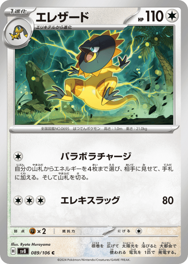 Parabolic ChargeCost: 1自分の山札からエネルギーを4枚まで選び、相手に見せて、手札に加える。そして山札を切る。