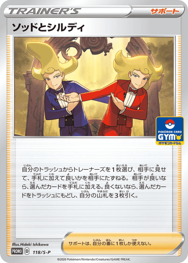自分のトラッシュからトレーナーズを1枚選び、相手に見せて、手札に加えて良いかを相手にたずねる。相手が良いなら、選んだカードを手札に加える。良くないなら、選んだカードをトラッシュにもどし、自分の山札を3枚引く。 サポートは、自分の番に1枚しか使えない。