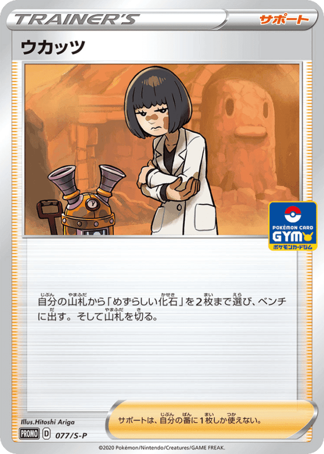 自分の山札から「めずらしい化石」を2枚まで選び、ベンチに出す。そして山札を切る。 サポートは、自分の番に1枚しか使えない。