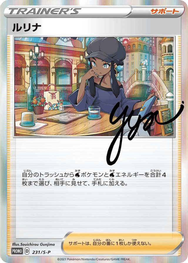 自分のトラッシュからWaterエネルギーを合計4枚まで選び、相手に見せて、手札に加える。 サポートは、自分の番に1枚しか使えない。