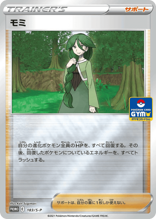 自分の進化ポケモン全員のHPを、すべて回復する。その後、回復したポケモンについているエネルギーを、すべてトラッシュする。 サポートは、自分の番に1枚しか使えない。