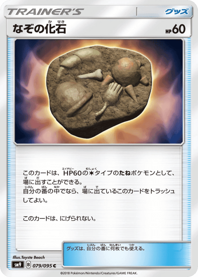 - このカードは、HP60のColorlessタイプのたねポケモンとして、場に出すことができる。<br> 自分の番の中でなら、場に出ているこのカードをトラッシュしてよい。 — このカードは、にげられない。 — グッズは、自分の番に何枚でも使える。
