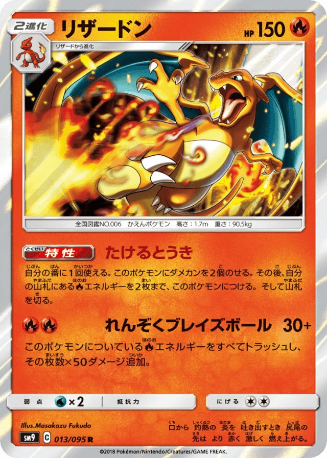 Continuous Blaze Ball30+Cost: 2このポケモンについているFireエネルギーをすべてトラッシュし、その枚数×50ダメージ追加。