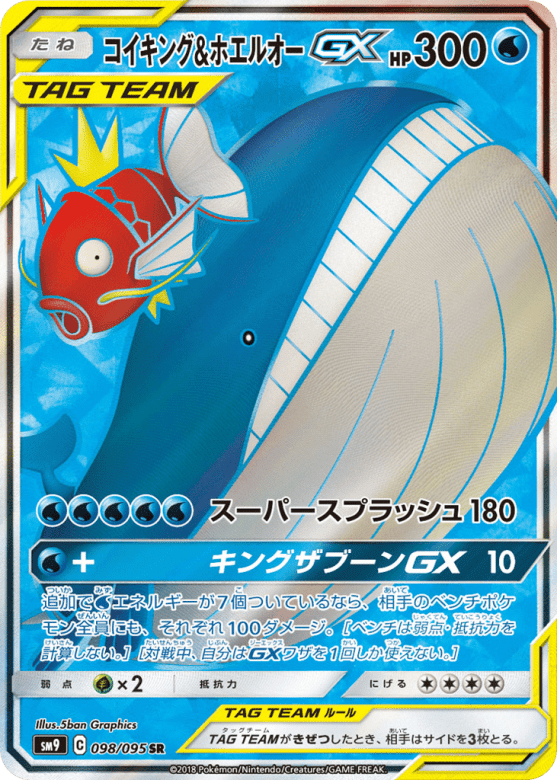 追加でWaterエネルギーが7個ついているなら、相手のベンチポケモン全員にも、それぞれ100ダメージ。[ベンチは弱点・抵抗力を計算しない。][対戦中、自分はGXワザを1回しか使えない。]