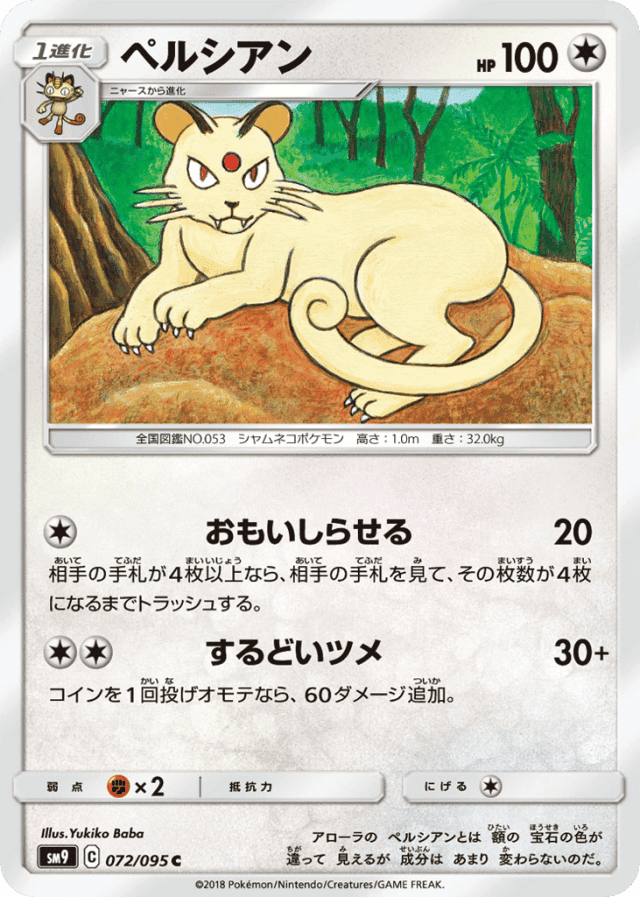 アローラの ペルシアンとは 額の 宝石の色が 違って 見えるが 成分は あまり 変わらないのだ。