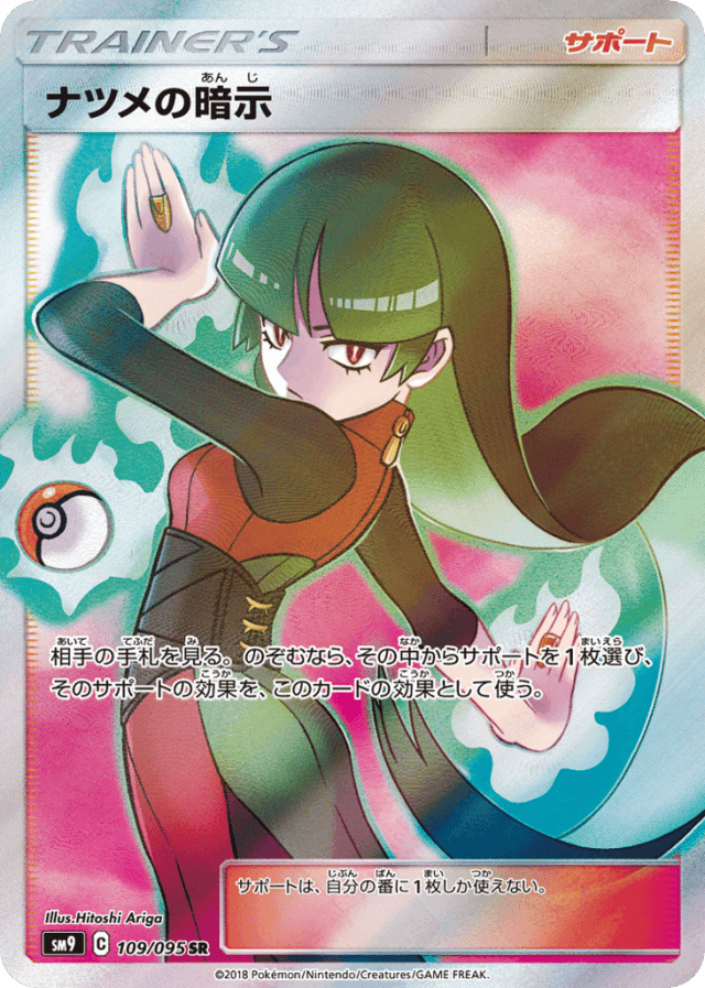 相手の手札を見る。のぞむなら、その中からサポートを1枚選び、そのサポートの効果を、このカードの効果として使う。 サポートは、自分の番に1枚しか使えない。