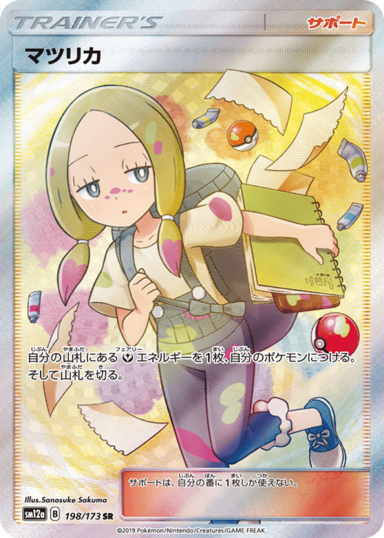 自分の山札にあるFairyエネルギーを1枚、自分のポケモンにつける。そして山札を切る。 サポートは、自分の番に1枚しか使えない。