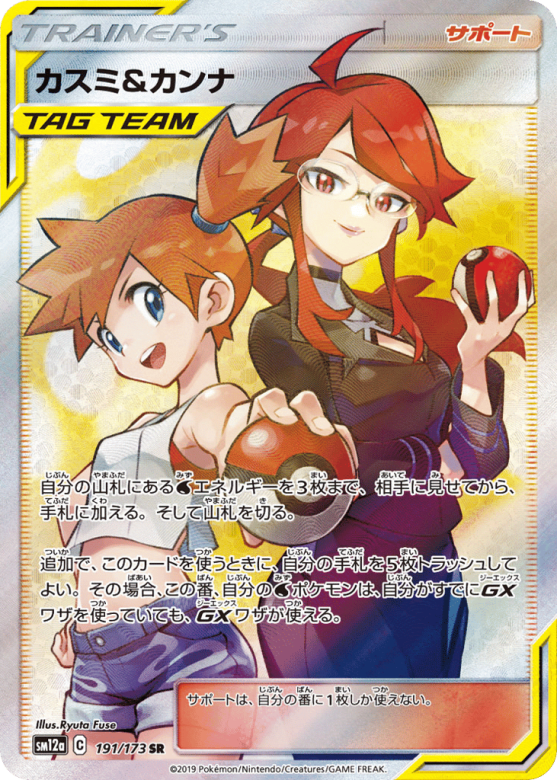 自分の山札にあるWaterエネルギーを3枚まで、相手に見せてから、手札に加える。そして山札を切る。 追加で、このカードを使うときに、自分の手札を5枚トラッシュしてよい。その場合、この番、自分のWaterポケモンは、自分がすでにGXワザを使っていても、GXワザが使える。 サポートは、自分の番に1枚しか使えない。