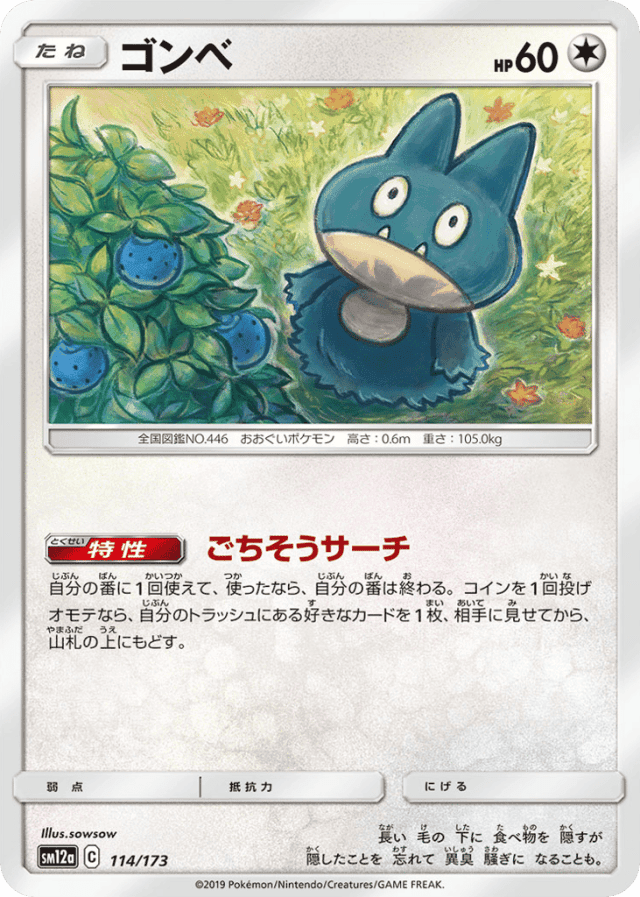 Snack Search自分の番に1回使えて、使ったなら、自分の番は終わる。コインを1回投げオモテなら、自分のトラッシュにある好きなカードを1枚、相手に見せてから、山札の上にもどす。