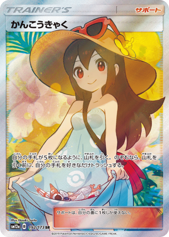 自分の手札が5枚になるように、山札を引く。のぞむなら、山札を引く前に、自分の手札を好きなだけトラッシュする。 サポートは、自分の番に1枚しか使えない。