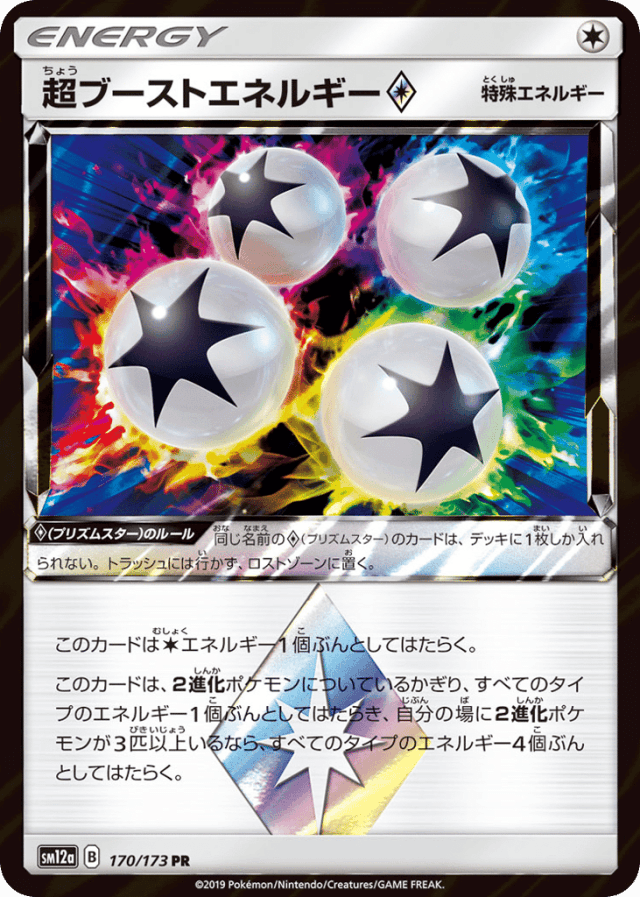 このカードはColorlessエネルギー1個ぶんとしてはたらく。 このカードは、2進化ポケモンについているかぎり、すべてのタイプのエネルギー1個ぶんとしてはたらき、自分の場に2進化ポケモンが3匹以上いるなら、すべてのタイプのエネルギー4個ぶんとしてはたらく。