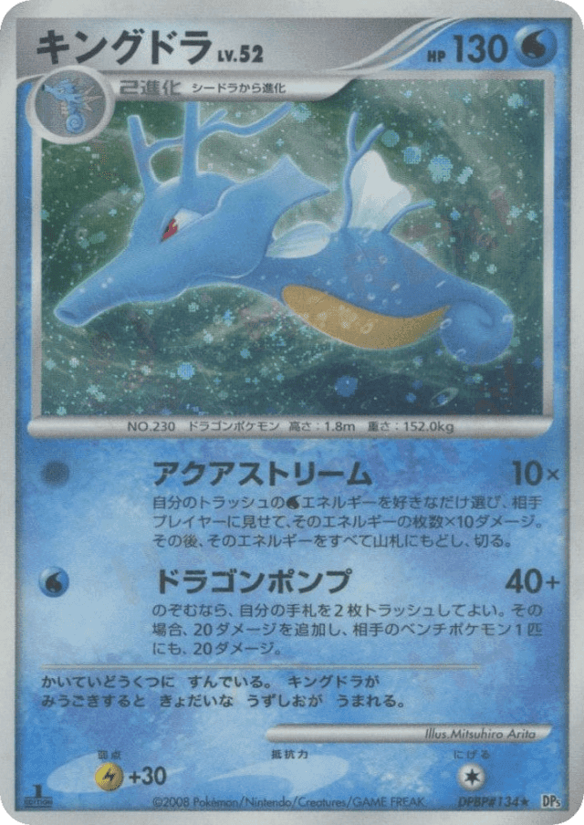 Aqua Stream10×Cost: 1自分のトラッシュのWaterエネルギーを好きなだけ選び、相手プレイヤーに見せて、そのエネルギーの枚数×10ダメージ。その後、そのエネルギーをすべて山札にもどし、切る。