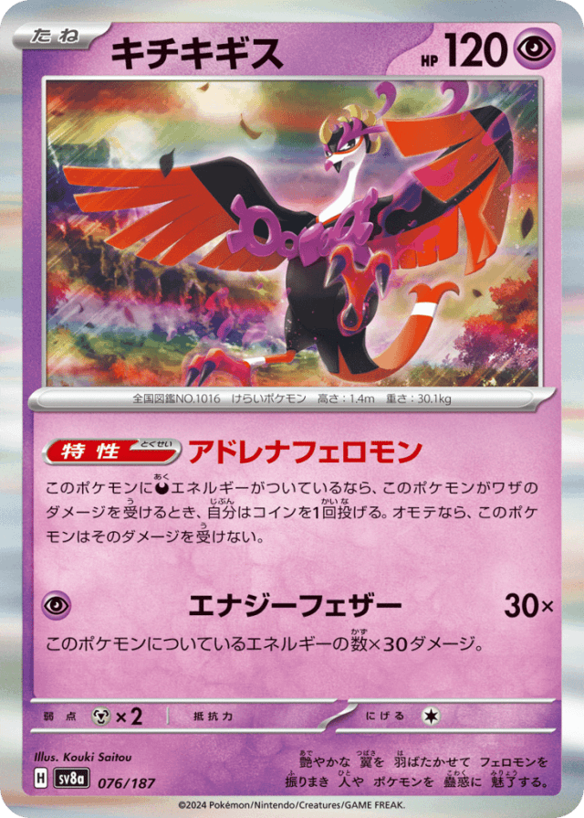 艶やかな 翼を 羽ばたかせて フェロモンを 振りまき 人や ポケモンを 蠱惑に 魅了する。