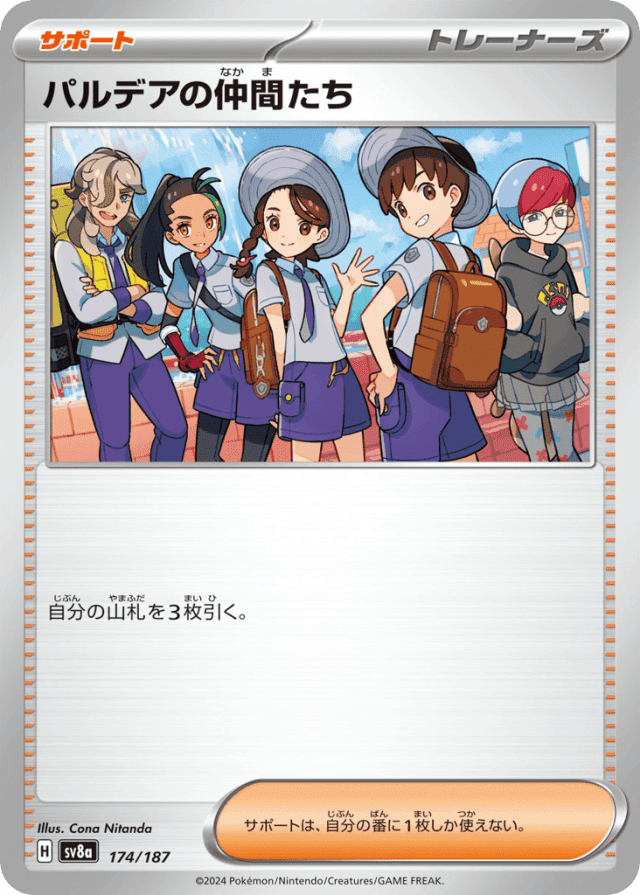 自分の山札を3枚引く。 サポートは、自分の番に1枚しか使えない。