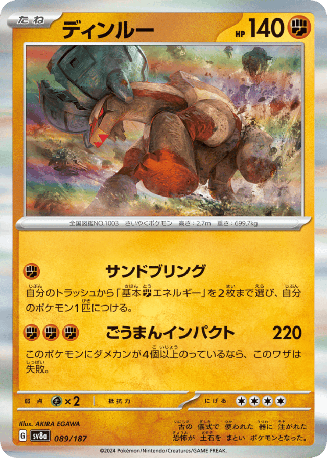 自分のトラッシュから「基本Fightingエネルギー」を2枚まで選び、自分のポケモン1匹につける。