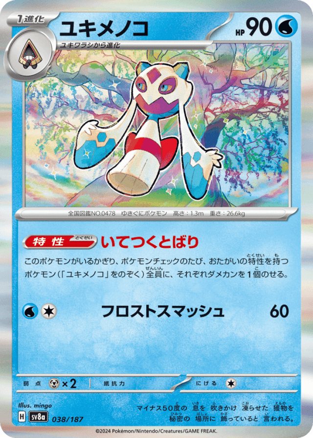 このポケモンがいるかぎり、ポケモンチェックのたび、おたがいの特性を持つポケモン(「ユキメノコ」をのぞく)全員に、それぞれダメカンを1個のせる。