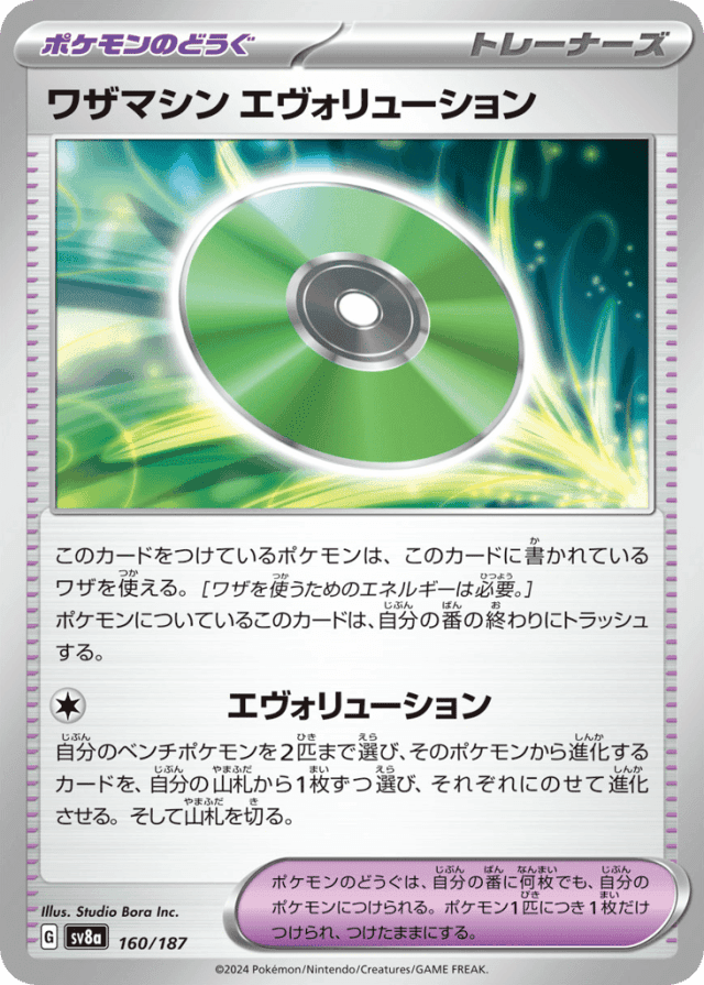 このカードをつけているポケモンは、このカードに書かれているワザを使える。[ワザを使うためのエネルギーは必要。]<br> ポケモンについているこのカードは、自分の番の終わりにトラッシュする。