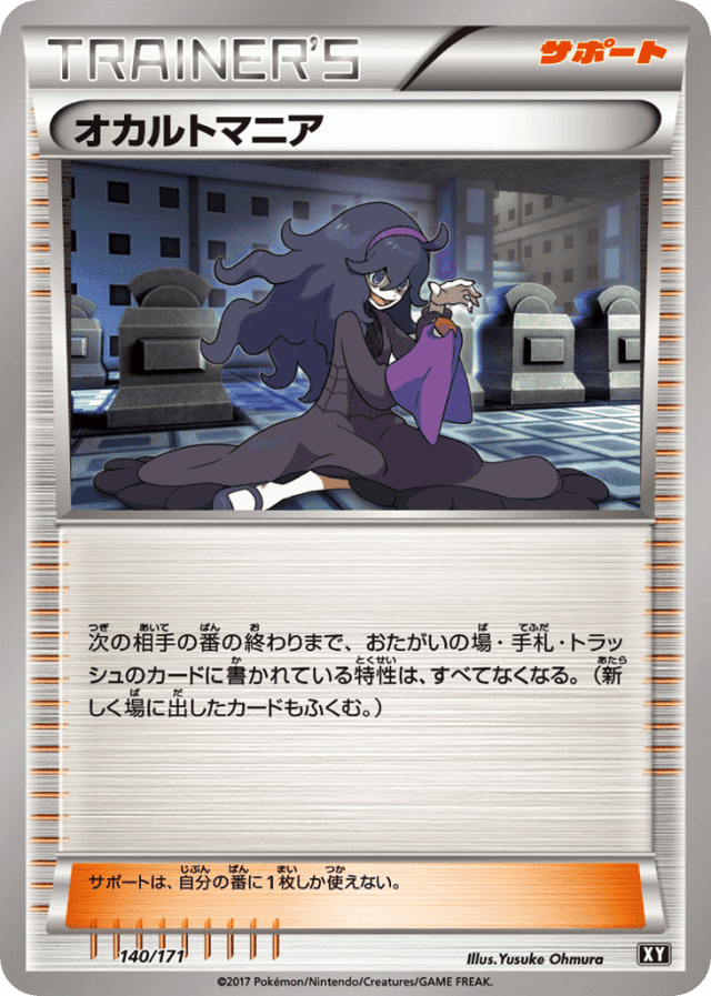 次の相手の番の終わりまで、おたがいの場・手札・トラッシュのカードに書かれている特性は、すべてなくなる。(新しく場に出したカードもふくむ。) サポートは、自分の番に1枚しか使えない。