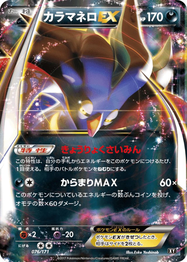 MAXamar60×Cost: 2このポケモンについているエネルギーの数ぶんコインを投げ、オモテの数×60ダメージ。