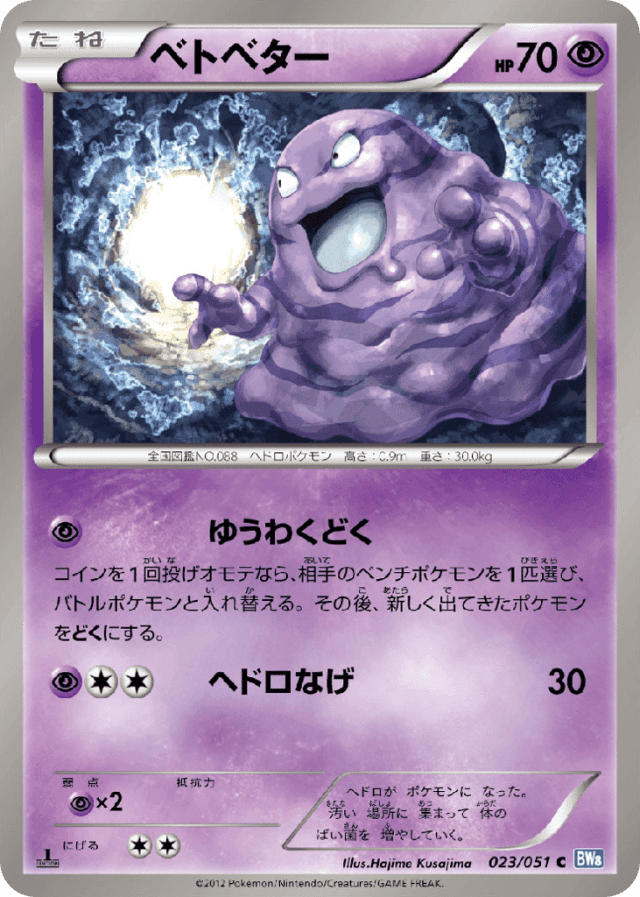 コインを1回投げオモテなら、相手のベンチポケモンを1匹選び、バトルポケモンと入れ替える。その後、新しく出てきたポケモンをどくにする。
