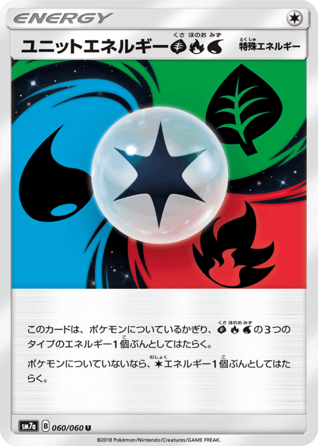 このカードは、ポケモンについているかぎり、Grassの3つのタイプのエネルギー1個ぶんとしてはたらく。 ポケモンについていないなら、Colorlessエネルギー1個ぶんとしてはたらく。