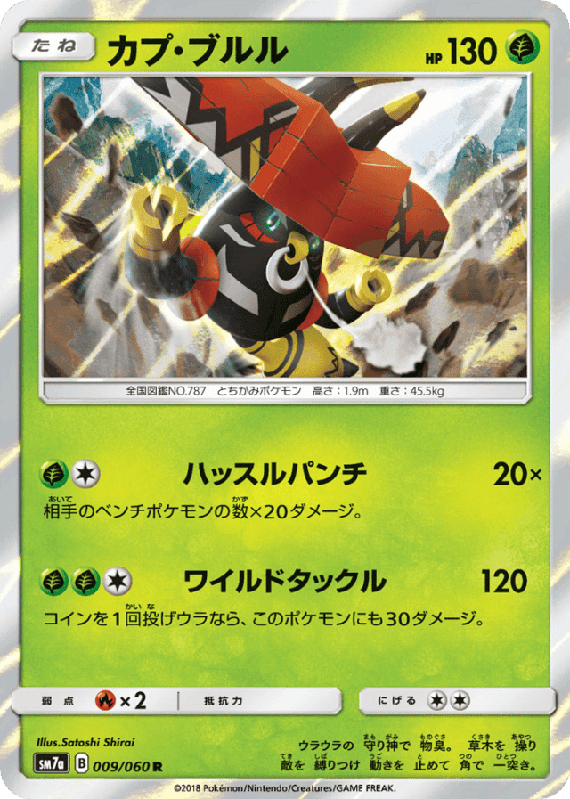 Wild Tackle120Cost: 3コインを1回投げウラなら、このポケモンにも30ダメージ。