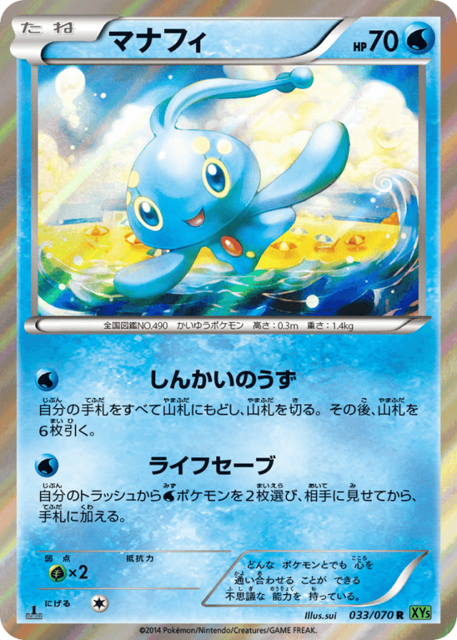 自分のトラッシュからWaterポケモンを2枚選び、相手に見せてから、手札に加える。
