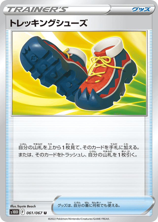 自分の山札を上から1枚見て、そのカードを手札に加える。または、そのカードをトラッシュし、自分の山札を1枚引く。 グッズは、自分の番に何枚でも使える。