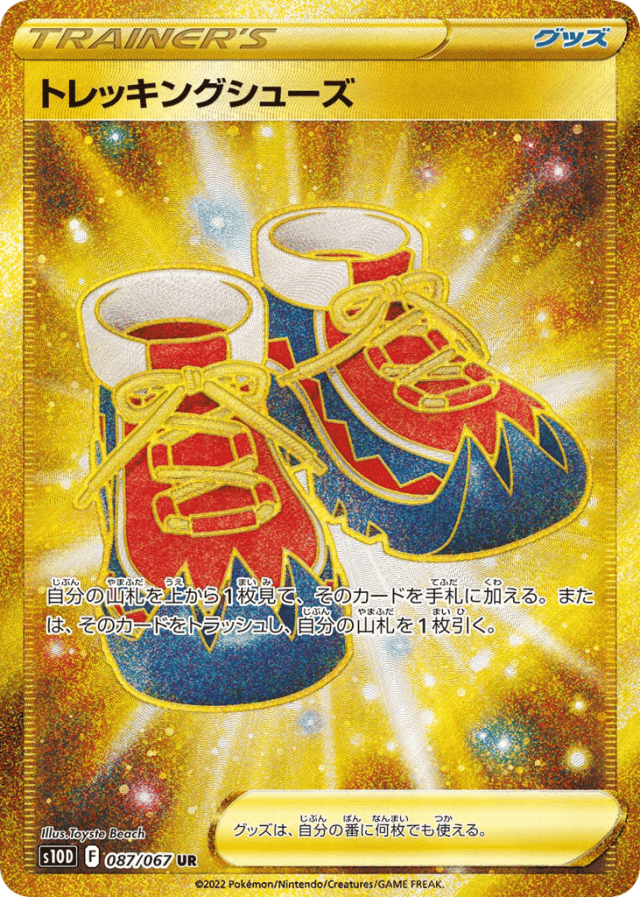 - 自分の山札を上から1枚見て、そのカードを手札に加える。または、そのカードをトラッシュし、自分の山札を1枚引く。 — グッズは、自分の番に何枚でも使える。